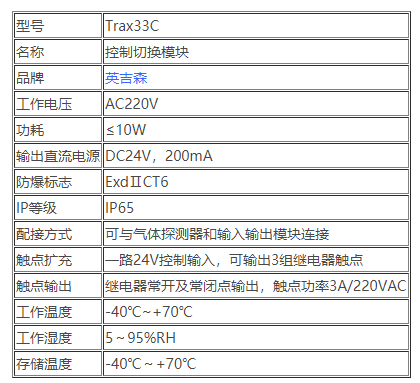 三、Trax33C控制切換模塊技術參數