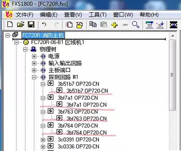 在調(diào)試軟件上看,每一個感煙探測器OP720下面都有一個通道,如圖